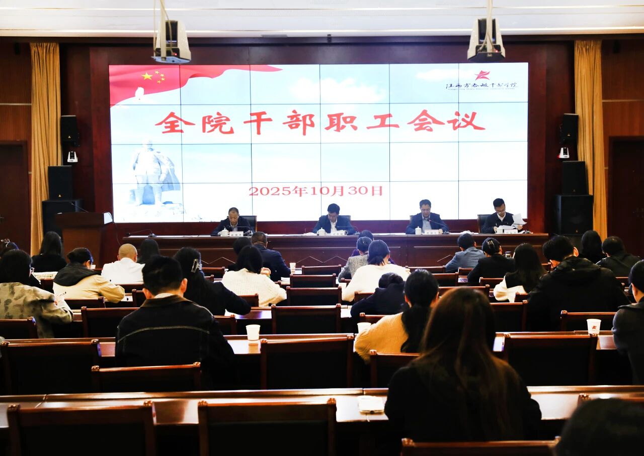 10月30日,江西方志敏干部学院召开全院干部职工会议,专题传达学习党的二十届四中全会精神,研究贯彻落实意见。学院常务副院长刘伟明主持会议并讲话。学院领导班子成员及全体教职工参加会议。